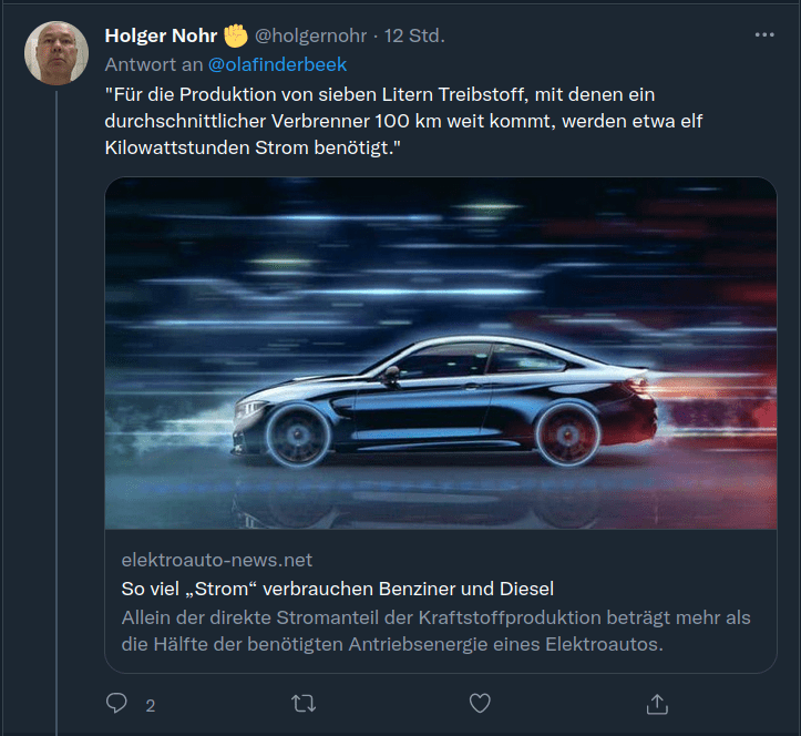 Die E-Auto-Bubble zeigt auf Twitter gerne, was sie nicht verstanden hat. So wie z.B. hier: