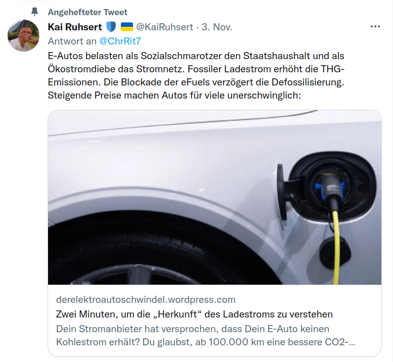 Der E-Auto-Hype wird früher oder später als sinnlose Ressourcenvergeudung durchschaut werden und scheitern (Stichworte hierfür sind: Subventionen, teure Ladeinfrastruktur, teure Aufrüstung der Netze für einen Luxusverbraucher, Rohstoffknappheit etc.).