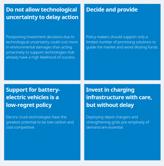 It postulates: „Moving away from conventional diesel trucks is essential to decarbonise the road freight sector and reduce air pollution.“