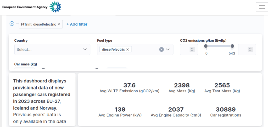 Es folgen die von der EEA angenommenen durchschnittlichen Emissionen neuer Diesel-Hybride: