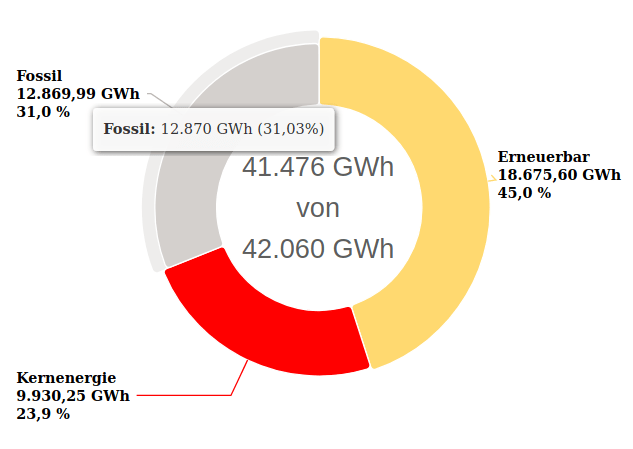 Spätestens jetzt sollten auch die nicht ganz so aufmerksamen Leser stutzen, da doch allgemein bekannt ist, dass in Europa noch einige Kohle-, Gas- und sogar Ölkraftwerke im Einsatz sind. Die Website Energy-charts.de bietet Daten für verschiedene Zeiträume an. Für 2023 wird berichtet: